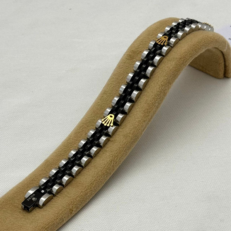 دستبند مردانه استیل رولکس طرحدار دورنگ هدیه ولنتاین ارسال رایگان