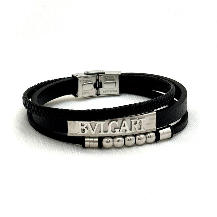 دستبند مردانه بولگاری استیل 3رج مشکی نقره ای هدیه ولنتاین ارسال رایگان