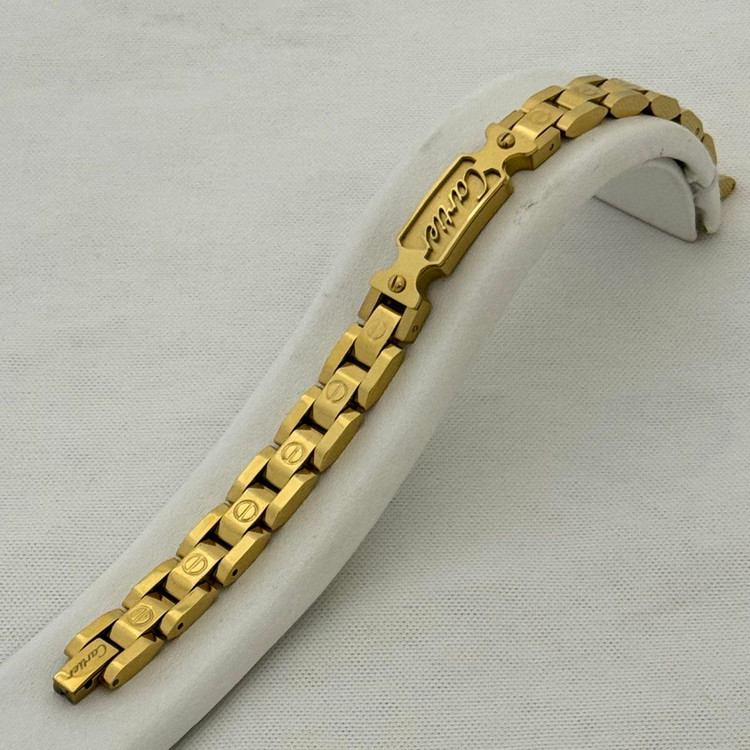 دستبند مردانه استیل کارتیر رنگ گلد زنجیر طرحدار خاص هدیه ولنتاین ارسال رایگان