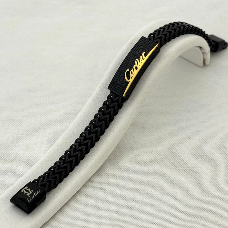 دستبند مردانه استیل کارتیر رنگ مشکی زنجیر طرحدار خاص هدیه ولنتاین ارسال رایگان