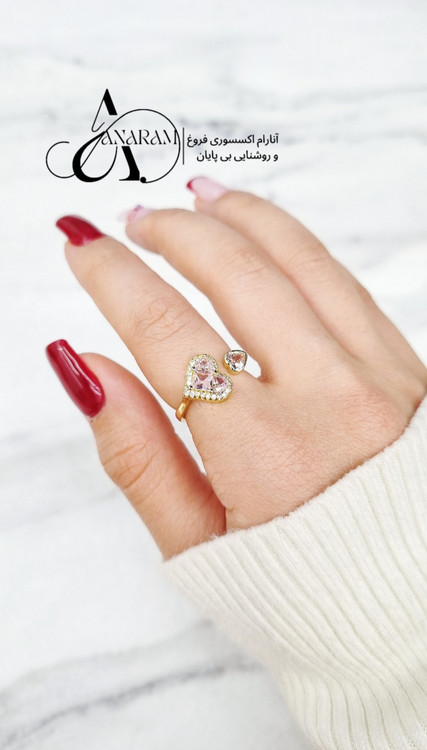انگشتر قلبی با نگینهای صورتی ترکیبی از عشق و درخشش