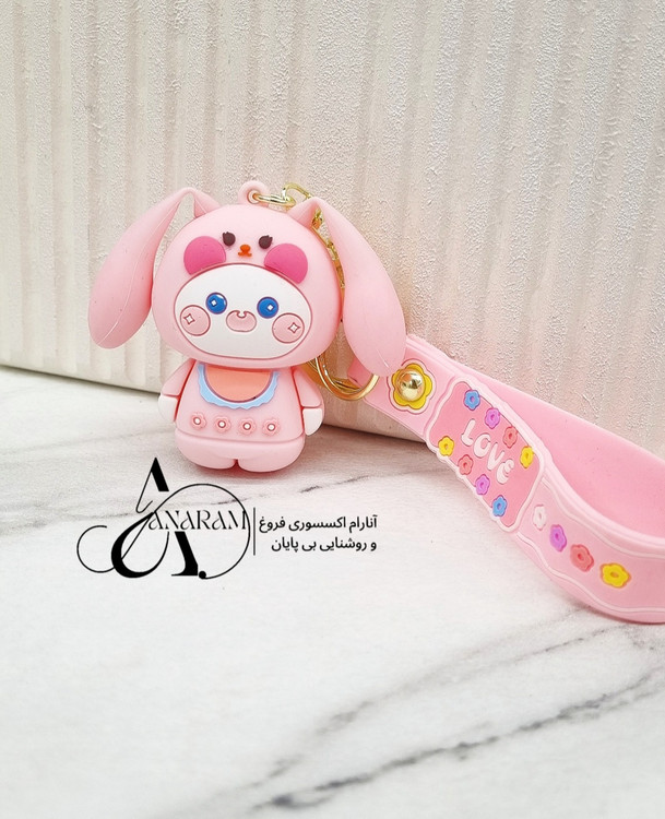 سرکلیدی فانتری خرگوش صورتی با گوش متحرک