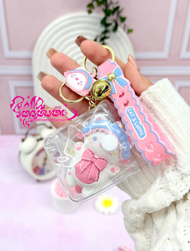 سرکلیدی گربه تپلو صورتی پاستلی کیف مدرسه