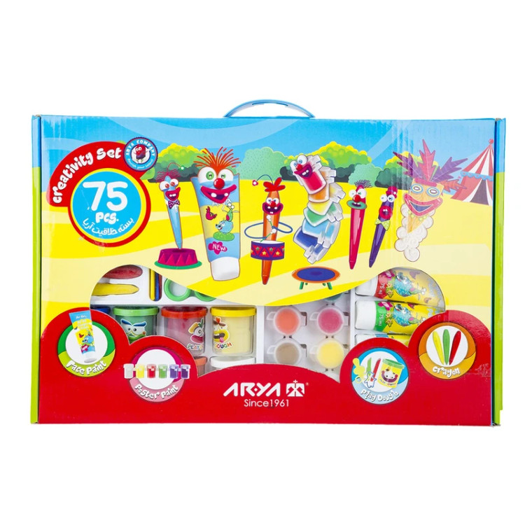امروزه برای پرورش خلاقیت در بچهها روشهای متنوعی وجود دارد؛ ولی مهمترین آنها نقاشی است. والدین برای پرورش خلاقیت مجبورند هزینههای گزافی بپردازند. این خرید علاوه بر اینکه یک خرید کاملاً اقتصادی و بهصرفه است، یک ماشین قالبزنی هم بهصورت مجانی به شما هدیه میدهد که میتوانید در طراحیهای متنوع با هشت خمیر موجود در این ست 75تکه از آن استفاده کنید. رنگهای انگشتی ششتایی، گواشهای دوازدهتایی، مداد شمعی ششرنگ و خمیربازی هشتتایی همگی در این ست وجود دارند. شرکت آریا با طراحی یک بازی فکری روی قسمت پشتی جعبه، کار را تمام کرده است. پس والدین عزیز، شما با خرید این مجموعه با قیمتی بسیار مناسب، درواقع دو بازی متنوع و خلاقانه را برای کوچولوهای بالای سه سال خریداری میکنید.