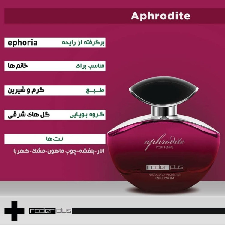 این عطر روحی درخشان و دلپذیر دارد، همانند نتهای میوهای خاصی که درون خودش به چنگ گرفته است. ایفوریا عطری اسرارآمیز و جذاب است که همچون گلهای تیره و خاص میدرخشد. عطری خاص که شما را به لذت بردن از شادیهای زندگی فرامیخواند. نتهای اصلی ایفوریا زنانه را میوه گل رز، سیب ژاپنی، ترکیبات سبز، لاله مردابی، ارکیده سیاه، چوبهای سرخ، بنفشه سیاه و کهربا میسازند