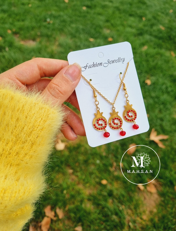 نیم ست انار نگین سرخ ارسال رایگان