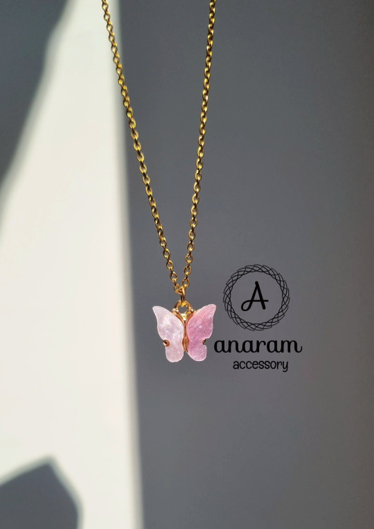 گردنبند دخترانه پروانه مینیمال کبنفش دورنگ کد ۱