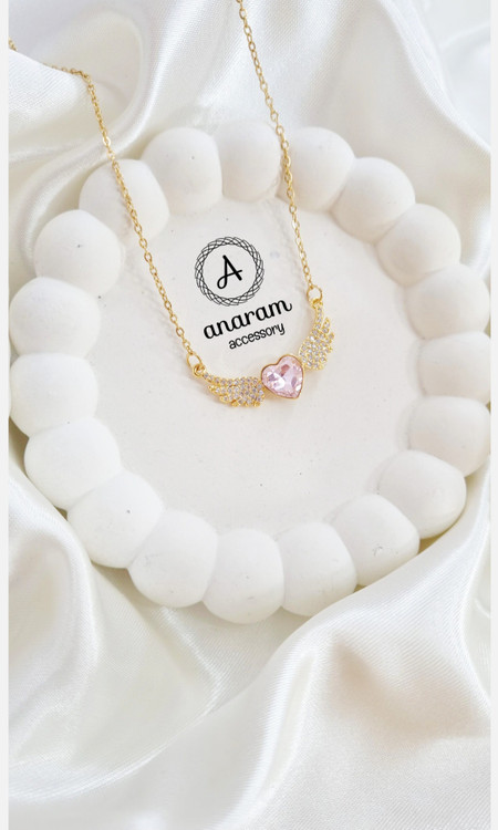 گردنبند دخترانه قلب کریستالی صورتی پرنسس