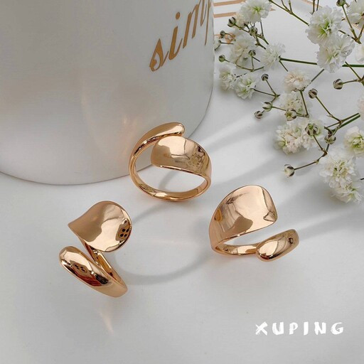 انگشتر موج دار آینه ای ژوپینگ، رنگ ثابت و ضد حساسیت، آبکاری طلا 18 عیار، موجود در سایز های 6 تا 9
