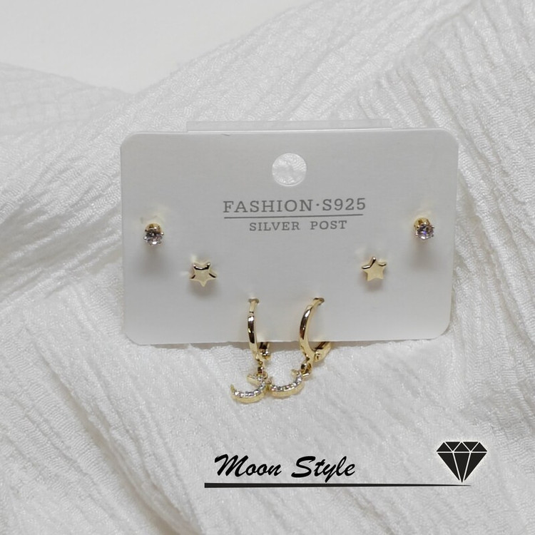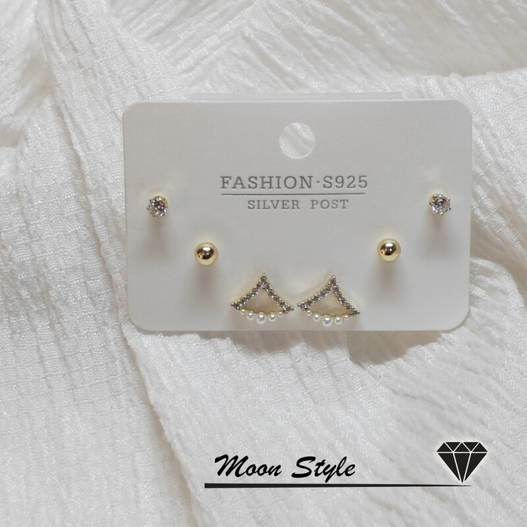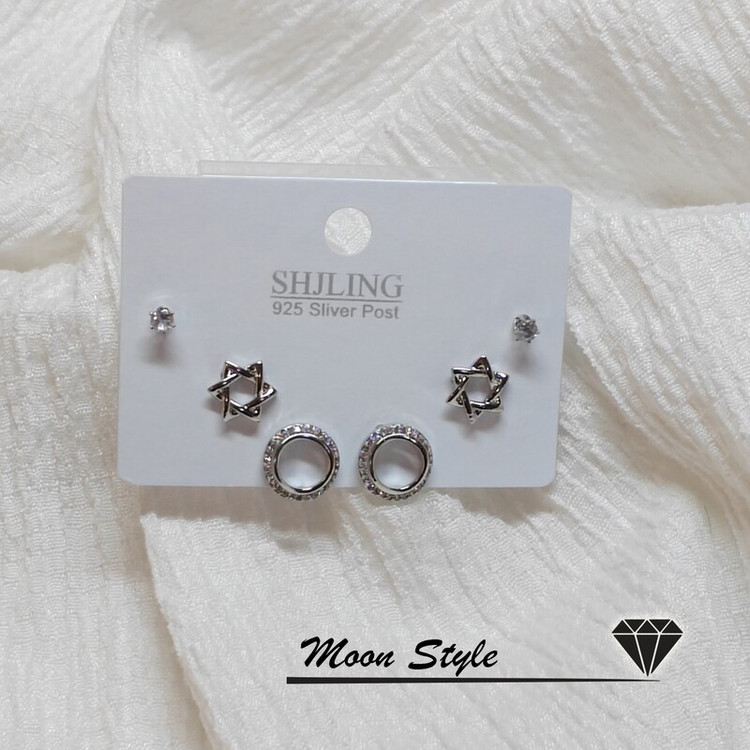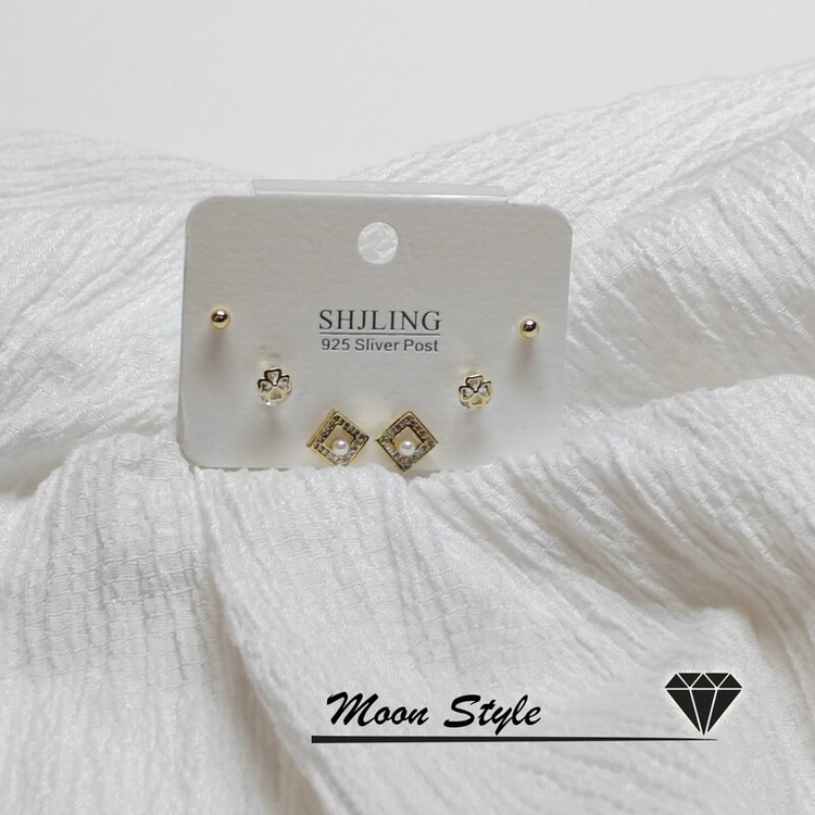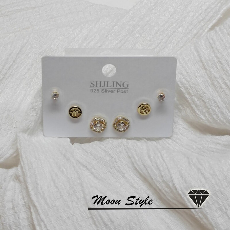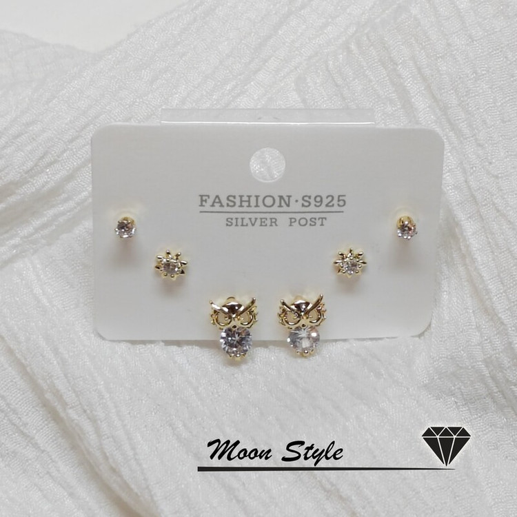 گوشواره دخترانه کارتی 3 جفتی میخ نقره در طرح های مختلف