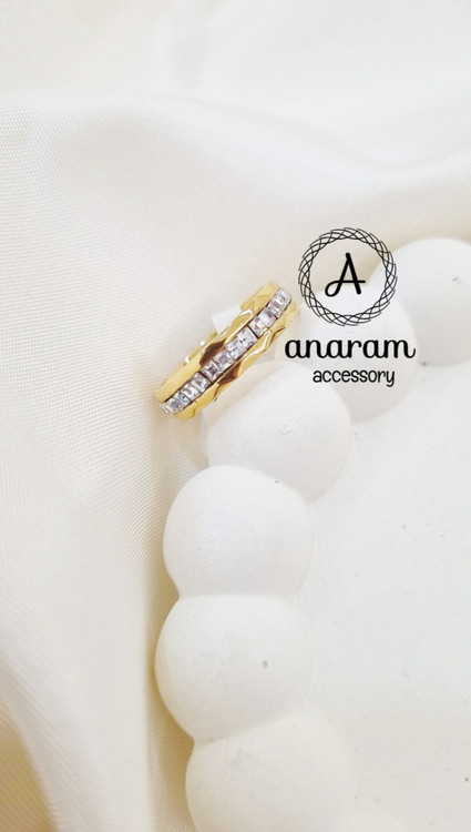 انگشتر زنانه رینگ حلقه رنگ نگین کریستالی طلایی